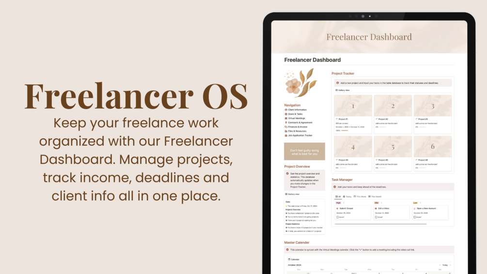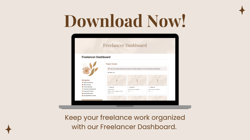 Keep your freelance work organized with our Freelancer Dashboard! Manage projects, track income, deadlines, and client info all in one simple place.