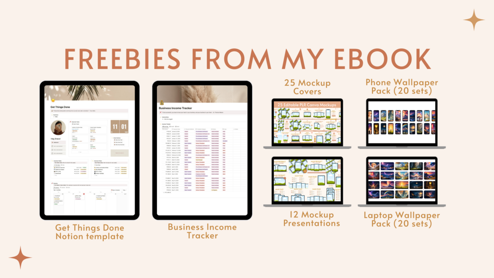 When you purchase this eBook, you will get a Notion template with all the links to this file and freebies for easy access. You will also see the Google Drive link of this eBook in the Notion template.