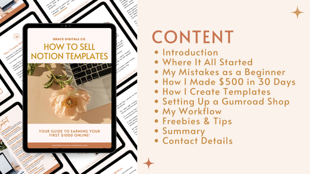 I earned $1,309.82 from selling Notion templates, this eBook will tackle how I did it using an organic marketing strategy with exclusive freebies for your business!