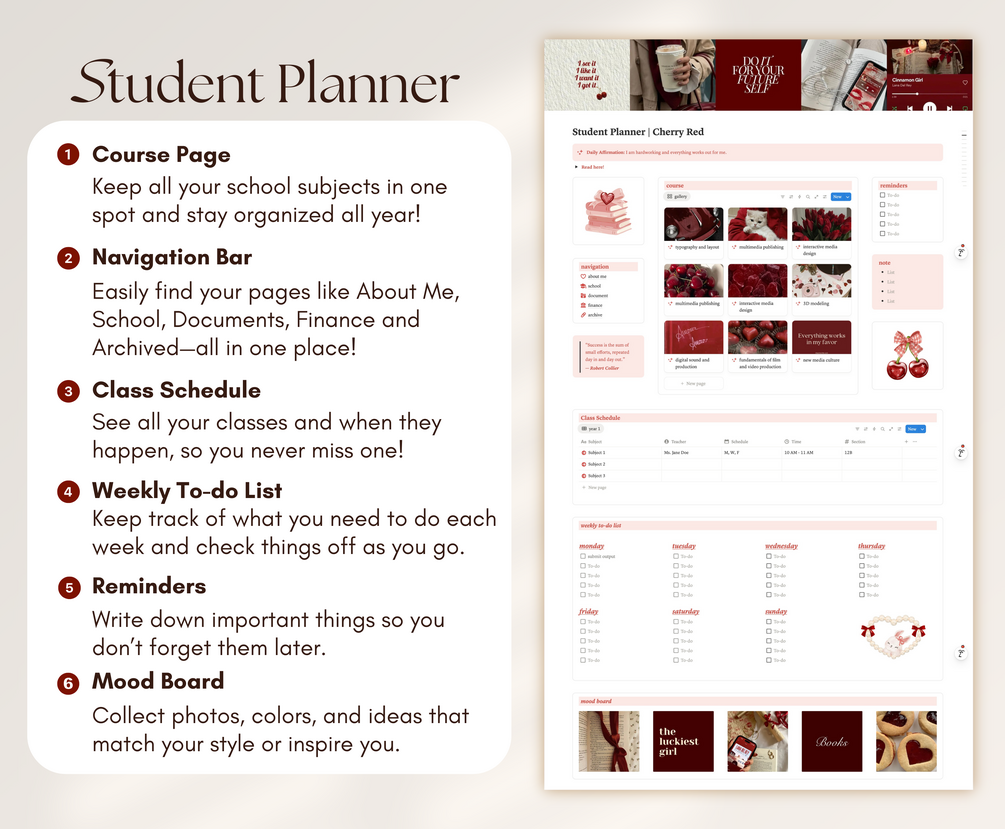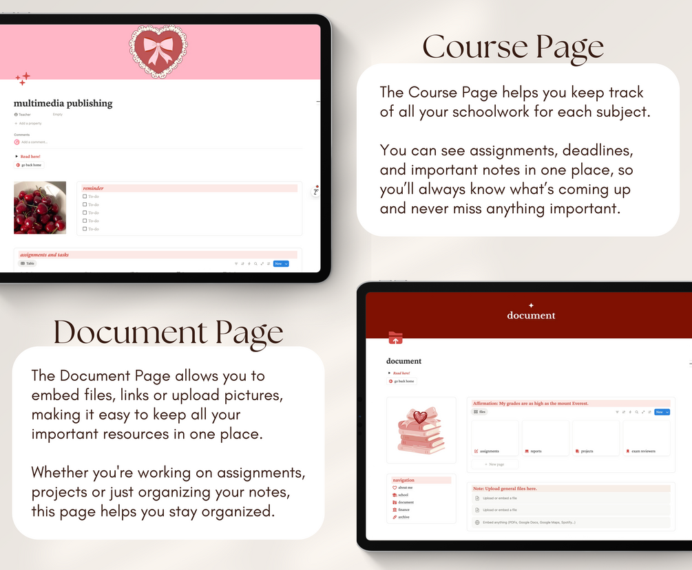 This 2025 Aesthetic Notion Template Student Planner is the perfect tool to help you stay organized with all your school tasks. With the All-in-One College Dashboard, you can easily track assignments, manage your study schedule and stay on top of your tasks. The ADHD Notion Assignment Planner is designed to help you stay focused and organized, making schoolwork much easier and less stressful.