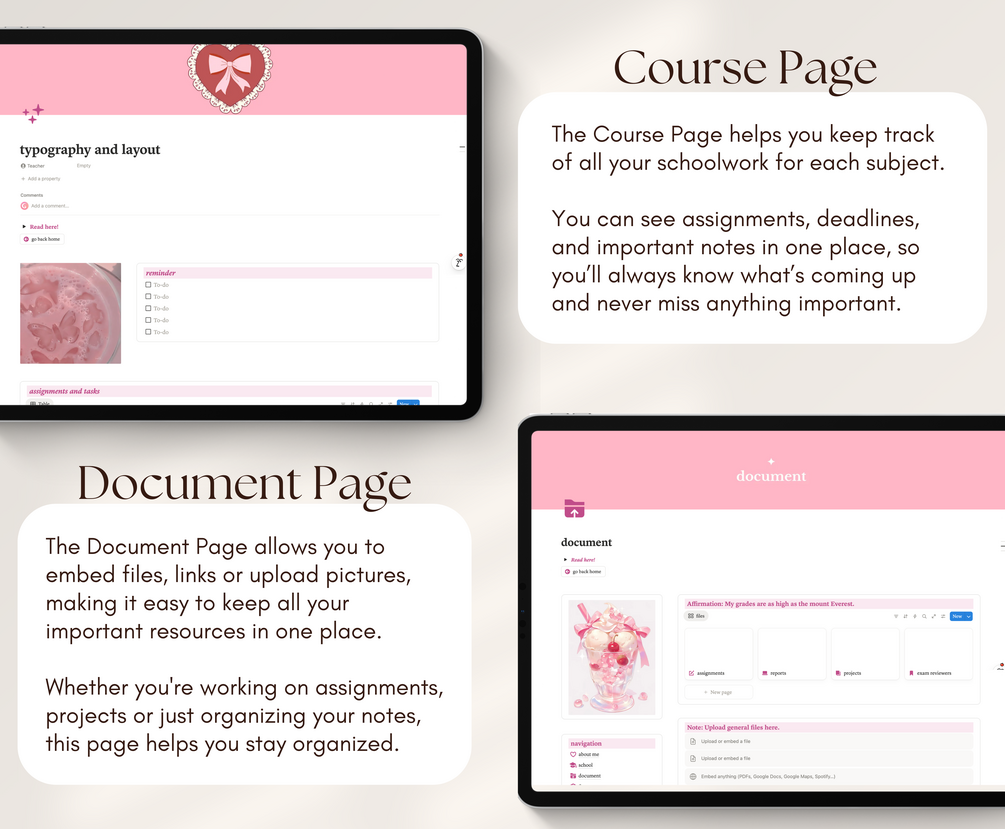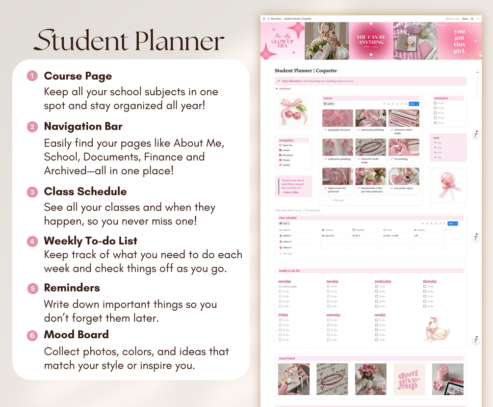 This 2025 Aesthetic Notion Template Student Planner is the perfect tool to help you stay organized with all your school tasks. With the All-in-One College Dashboard, you can easily track assignments, manage your study schedule and stay on top of your tasks. The ADHD Notion Assignment Planner is designed to help you stay focused and organized, making schoolwork much easier and less stressful.