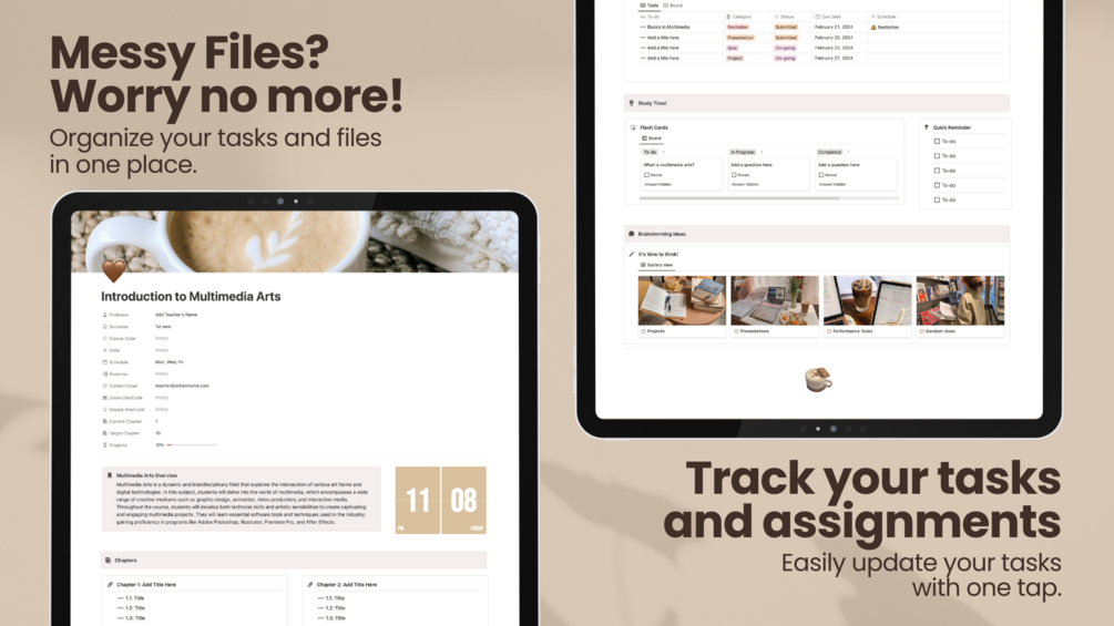 Easily access your files and organize your tasks in one place! The minimalist layout is designed to help students stay focused and productive during study sessions!