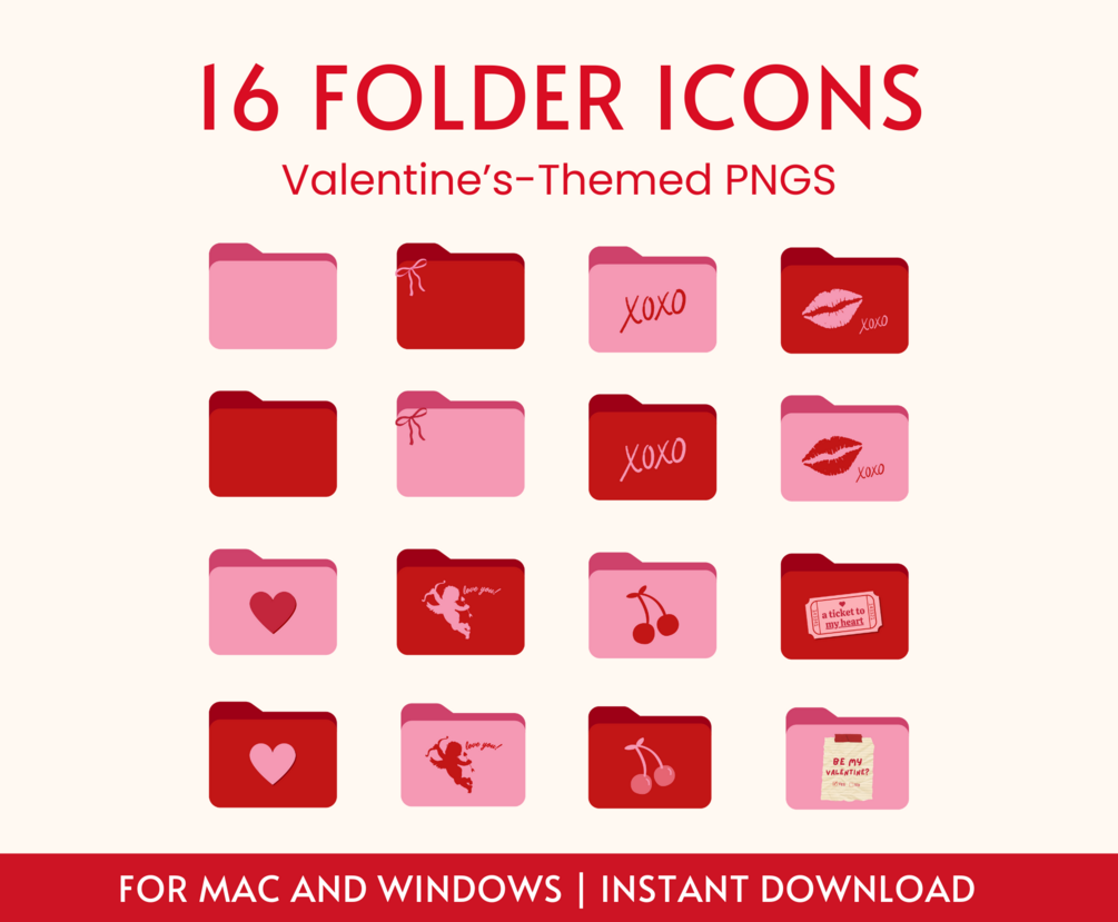 Valentine's Desktop Organizers | 15 Wallpapers + 16 Free Folder Icons
